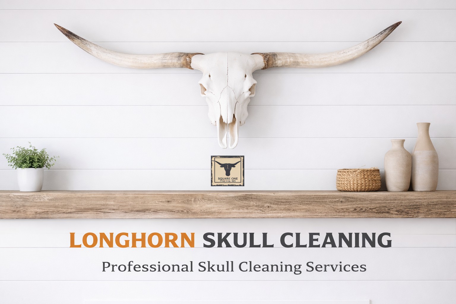 At Square One Longhorns, we offer professional Longhorn skull cleaning and preservation services on a limited basis for those looking to honor and showcase the beauty of these iconic animals. Each skull we work on comes from a deceased Longhorn outside of our own herd and is carefully cleaned and prepared for display in homes, offices, ranches, and businesses.